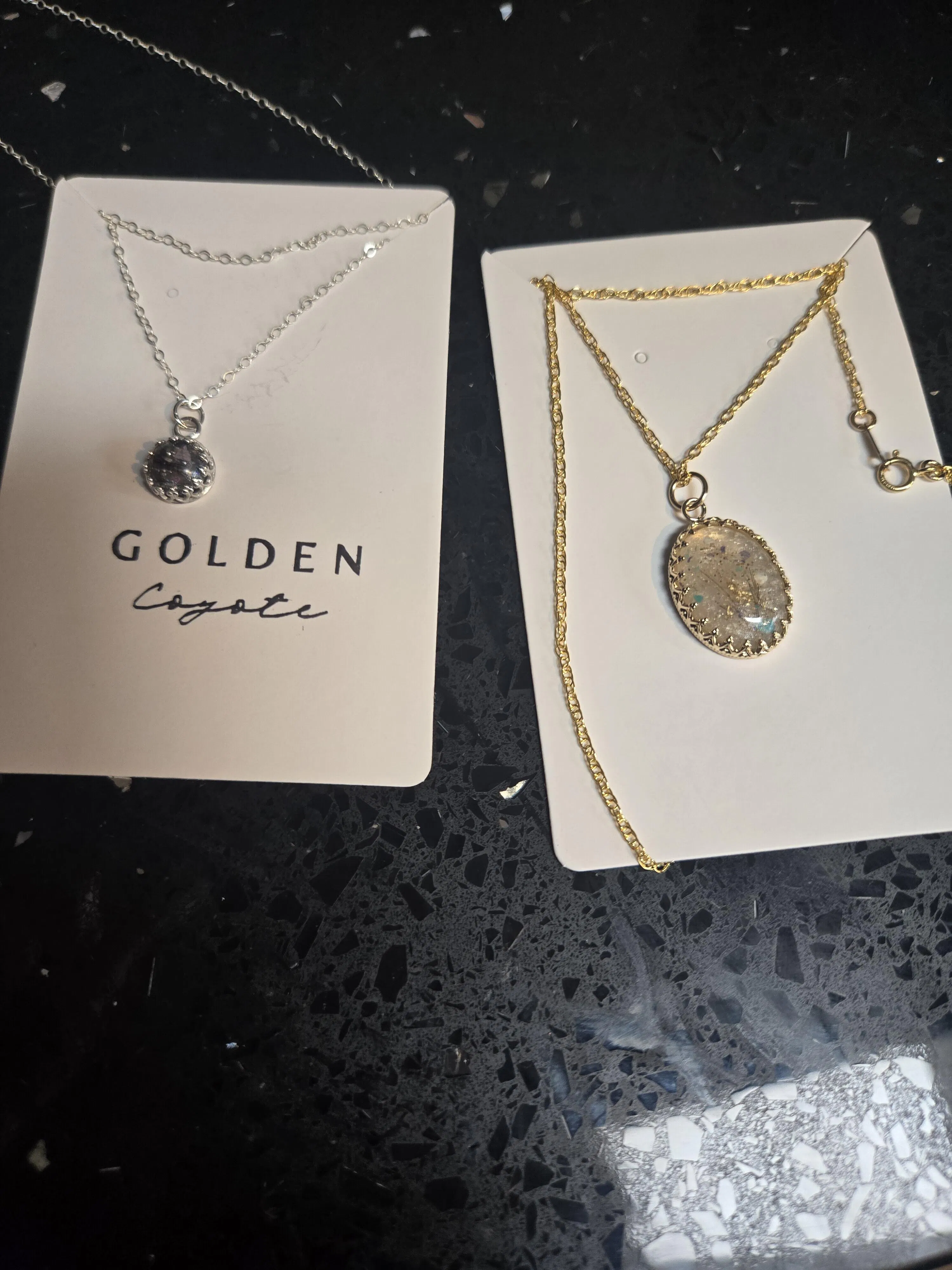 The most precious piece of jewelery I have now. Michelle did a great job matching my beloved dogs eyes in the pendant, her communication was sincere, with quick response time. I'm so happy how this turned out <3