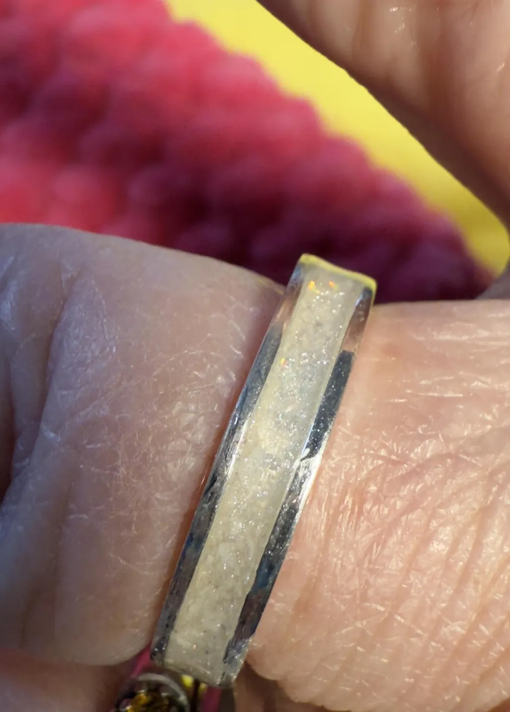 I received 2 channel rings for my Mom and myself recently to honour and have a daily reminder of my Dad. Crushed opal and pearl was chosen in a silver band. I loved the photo on website but it’s more beautiful to see it in real life. From the moment I contacted Golden Coyote inquiring about ring and asking questions to receiving the ring all was done smoothly, professionally and respectfully. Messages I sent were answered promptly. Should I require any further Memorial Jewellery I wouldn’t hesitate to have it done with Golden Coyote.
